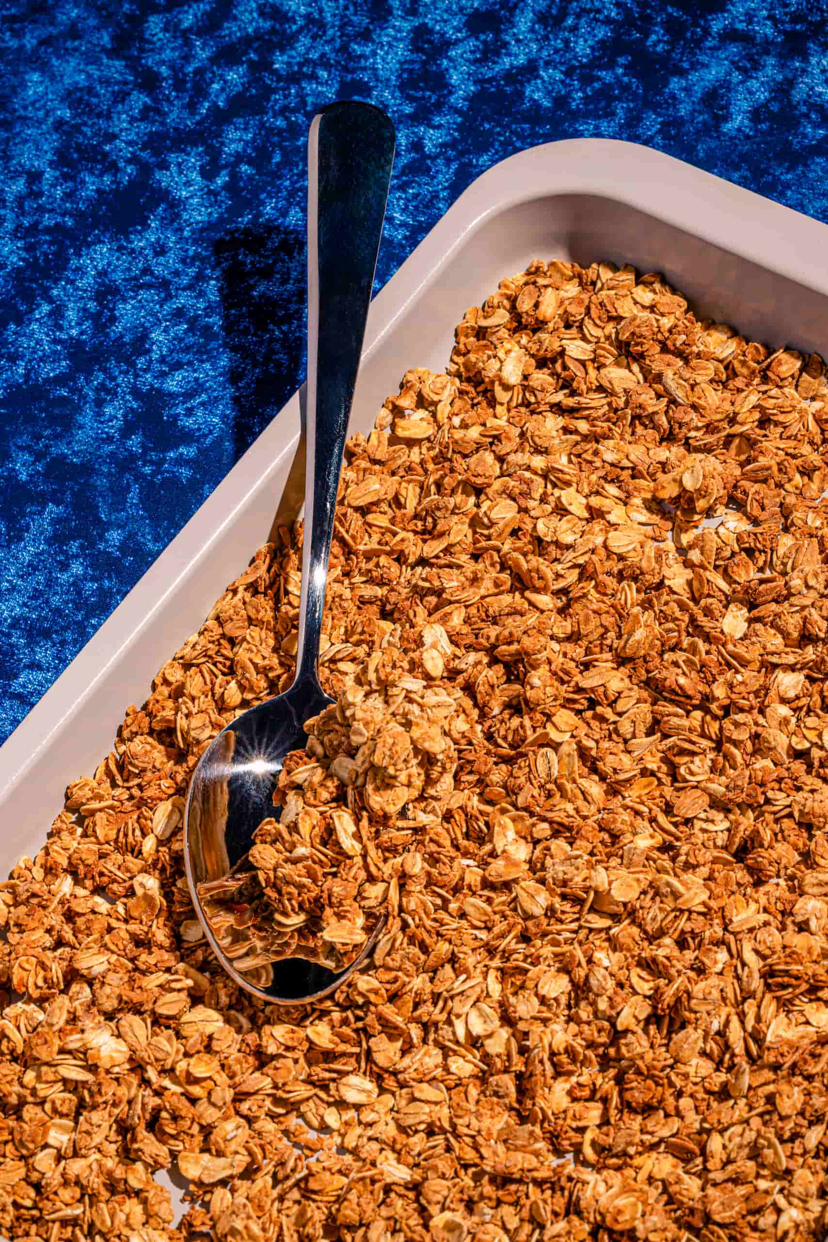Accueil Recettes Sans oeufs Granola simple et croustillant au miel et à la vanille Close Consulter mes favoris Close Avantages exclusifs Deviens membre BPT+ pour ajouter une recette en favori et profiter d'une foule d'autres avantages! Deviens membre BPT+ Granola simple et croustillant au miel et à la vanille Table des matières Introduction Ingrédients Préparation FAQ Nutrition Commentaires Par : Pamela Rousseau, Dt.P., Nutritionniste Préparation 5 min Cuisson 40 min Réfrigération 0 min Congélation 0 min 2 ½ tasses (625 ml) Facile Table des matières Introduction Ingrédients Préparation FAQ Nutrition Commentaires Restrictions alimentaires Sans arachides Sans lactose Sans noix Sans oeufs Végétarien Catégories Granolas Tu aimes? Tu partages! Granola simple et croustillant au miel et à la vanille Découvre la meilleure recette de granola simple et croustillant au miel et à la vanille! Le granola simple et croustillant au miel et à la vanille transforme des flocons d’avoine en petites bouchées dorées, légèrement sucrées et bien parfumées. La cuisson douce au four donne une texture croquante sans effort, parfaite pour garnir un bol de yogourt ou un bol de smoothie. Avec du miel et un soupçon de vanille, le résultat est savoureux à chaque bouchée. En plus, la liste d’ingrédients reste courte, ce qui en fait une base pratique à refaire souvent, même quand le temps manque. Tu pourrais d’ailleurs utiliser cette recette pour mélanger à tes céréales favorites. Une texture croustillante qui se conserve bien! Le secret, c’est d’enrober les flocons d’avoine uniformément avant d’étaler le tout en couche régulière. Ensuite, il suffit de mélanger à mi-cuisson afin d’assurer une cuisson uniforme. Les flocons d’avoine deviendront alors vraiment croustillants en refroidissant. Finalement, pour encore plus de saveurs, la cannelle vient ajouter une touche réconfortante à la recette. Tu pourrais toutefois omettre cet ingrédient pour une recette de granola classique au miel. Tu aimes? Tu partages! BON DANS LA BOUCHE : Voici d’autres délicieuses recettes à préparer pour les déjeuners! Déjeuners Gruau overnight protéiné Déjeuners Gruau au chocolat Déjeuners Gruau overnight (recette de base) Granolas Granola maison aux noix de macadam Granolas Granola maison au chocolat noir Bonà savoir Le croustillant se crée au refroidissement! Même si le granola paraît encore un peu souple en sortant du four, c’est tout à fait normal. En refroidissant sur la plaque, le miel fige et le granola durcit, ce qui crée le vrai croustillant. Le laisser sur la plaque est important, car si le granola est transféré trop tôt dans un bol ou un contenant, la chaleur emprisonnée crée de la condensation. Cette humidité ramollit les flocons et enlève le croquant, surtout au centre des morceaux. Nos essentiels pour ce granola Cuillères et tasses à mesurer Voir sur Amazon Bols à mélanger OXO Voir sur Amazon Plaque de cuisson métallique Voir sur Amazon Contenants hermétiques OXO Voir sur Amazon Pour d'autres équipements, petits électros ou ingrédients : DÉCOUVRE NOTRE BOUTIQUE AMAZON Ingrédients pour la recette de granola simple et croustillant au miel et à la vanille Passer en mode cuisine Métrique Impérial Granola simple et croustillant au miel et à la vanille Miel - ¼ tasse 60 ml (85 g) À découvrir! Eau - 2 c. à soupe 30 ml (30 g) À découvrir! Extrait de vanille - ½ c. à thé 2,5 ml (2 g) À découvrir! Cannelle moulue - ¼ c. à thé 1,25 ml À découvrir! Sel de table - ¼ c. à thé 1,25 ml À découvrir! Gros flocons d’avoine - 2 tasses 500 ml (220 g) À découvrir! Avantages exclusifs Pour une expérience 100 % sans pub, abonne-toi à BPT+ Devenir membre BPT+ Avantages exclusifs Pour une expérience 100 % sans pub, abonne-toi à BPT+ Devenir membre BPT+ Préparation Passer en mode cuisine Granola simple et croustillant au miel et à la vanille Étape 1 Préparer la cuisson : Préchauffer le four à 300 °F (150 °C) et tapisser une plaque de cuisson de papier parchemin. Étape 2 Chauffer le miel et l'eau : Mélanger le miel et l’eau dans un grand bol, puis chauffer au micro-ondes 45 secondes, juste assez pour rendre le mélange plus fluide. Étape 3 Aromatiser le mélange : Ajouter l’extrait de vanille, la cannelle et le sel au mélange de miel, puis remuer pour bien combiner. Étape 4 Enrober les flocons d'avoine : Verser les flocons d’avoine dans le bol et mélanger jusqu’à ce qu’ils soient bien enrobés. Étape 5 Cuire le granola : Étaler le granola sur la plaque en couche uniforme, puis cuire 20 minutes. Remuer le granola pour l’aérer et l’égaliser, puis remettre au four et cuire 20 minutes supplémentaires. Étape 6 Refroidir le granola : Retirer du four et laisser refroidir complètement sur la plaque pour que le granola devienne bien croustillant. Conserver ensuite dans un contenant hermétique. Explore Bon pour toi Américaine Automne Canadienne Été Granolas Hiver Printemps Sans arachides Sans lactose Sans noix Sans oeufs Végétarien Miel Gros flocons d’avoine Alternatives Pour un granola croustillant facile au four moins sucré : baisse simplement la quantité de miel à 3 c. à soupe (45 ml) et garde l’eau à 2 c. à soupe (30 ml). Pour un granola aux flocons d’avoine et au miel sans gluten : utilise 2 tasses (500 ml) de flocons d’avoine certifiés sans gluten. L’avoine est naturellement sans gluten, mais elle est très souvent contaminée par du blé (ou du triticale) pendant la culture, le transport ou la transformation. Choisis donc la mention « certifié sans gluten », surtout en cas d’intolérance ou de maladie coeliaque. Tu veux enregistrer ou imprimer cette recette? Entre ton adresse et nous t’enverrons cette recette par courriel. En prime, tu recevras d’autres succulentes recettes toutes les semaines! Envoyer Tu aimes? Tu partages! Bonà savoir Questions fréquentes : Comb